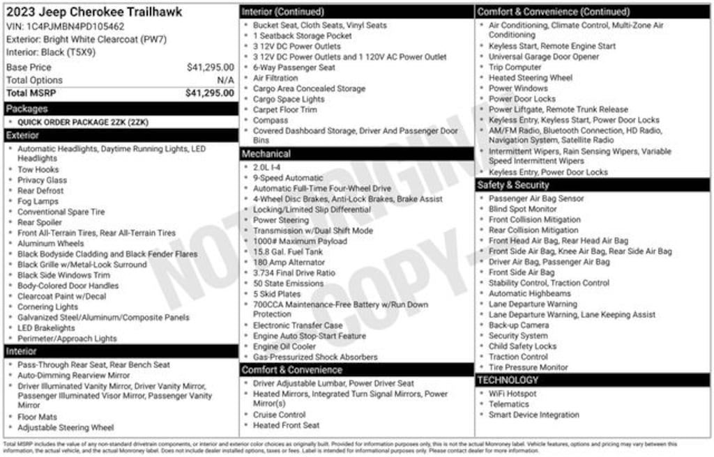 Bright White Clearcoat 2023 Jeep Cherokee Trailhawk 4D Sport Utility 9-Speed 948TE Automatic 2.0L I4 DOHC 4WD